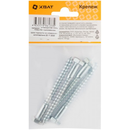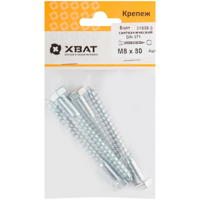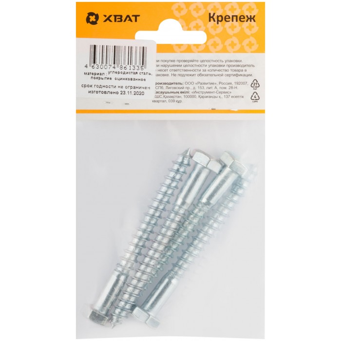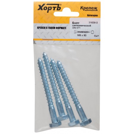 Шестигранная головка D=10/12/14/19. Редкий шаг резьбы под углом 600, острый наконечник, изготовлен из стали. Оцинкованный. Применяется для крепления лаг, реек, сборки деревянных конструкций, сантехнических креплений и других целей, когда требуется мощное закрепление. Используется также совместно с пластмассовыми и металлическими универсальными дюбелями.