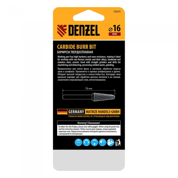 Борфреза по металлу твердосплавная, коническая закругленная, тип-L, 16 мм Denzel
