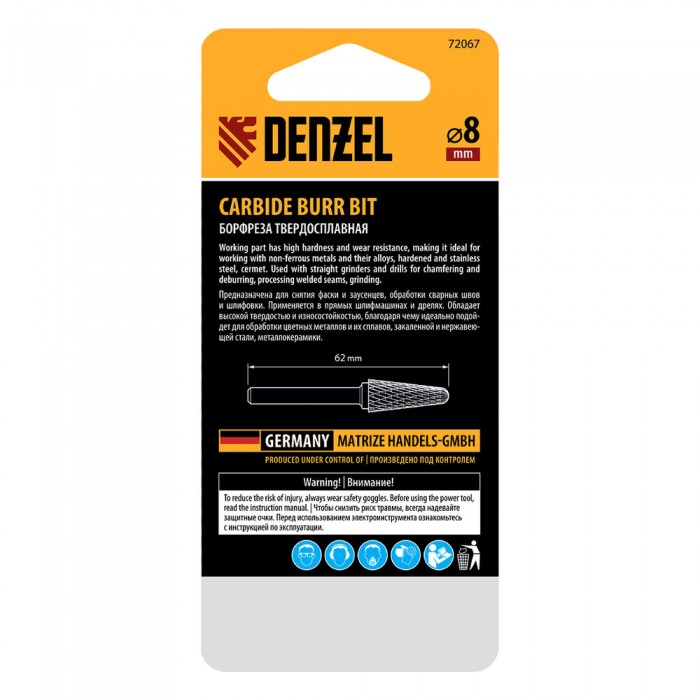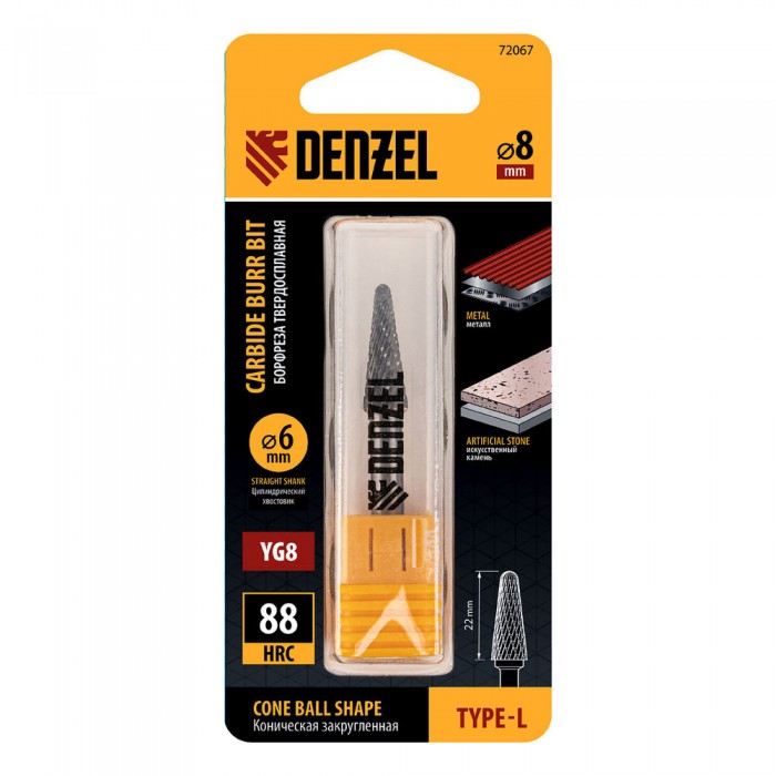 Борфреза по металлу твердосплавная, коническая закругленная, тип-L, 8 мм Denzel