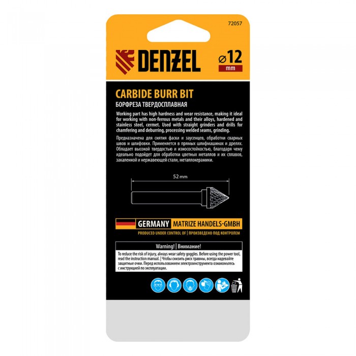 Борфреза по металлу твердосплавная, зенкер 60 град., тип-J, 12 мм Denzel