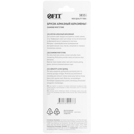 Для заточки особо твердого инструмента, ножей, ножниц и пр. Материал: инструментальная сталь, пластик, покрытие из порошка технических алмазов. Упаковка: блистер.