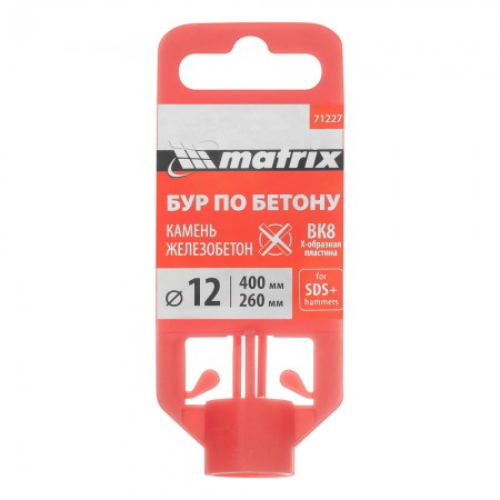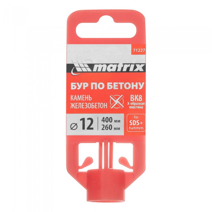 Бур по бетону, 12 х 400 мм, SDS Max c крестовой пластиной Matrix (71227)