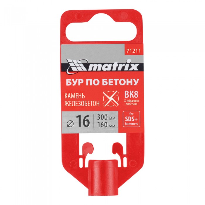 Бур по бетону, 16 х 300 мм, SDS Max c крестовой пластиной Matrix (71211)