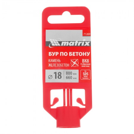 Бур по бетону, 18 х 800 мм, SDS Max c крестовой пластиной Matrix (71269)