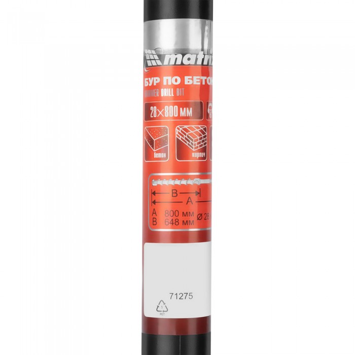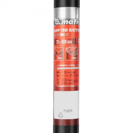 Бур по бетону, 28 х 800 мм, SDS Max c крестовой пластиной Matrix (71275)