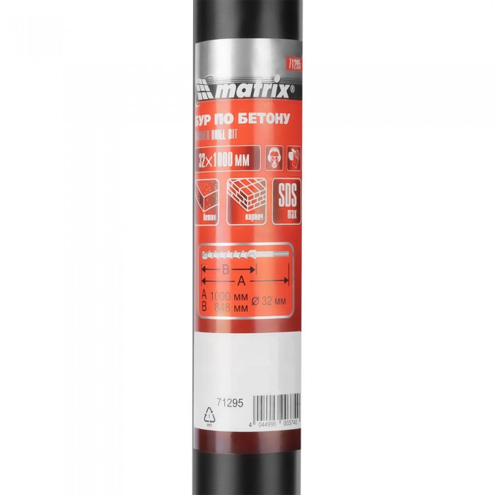 Бур по бетону, 32 х 1000 мм, SDS Max c крестовой пластиной Matrix (71295)