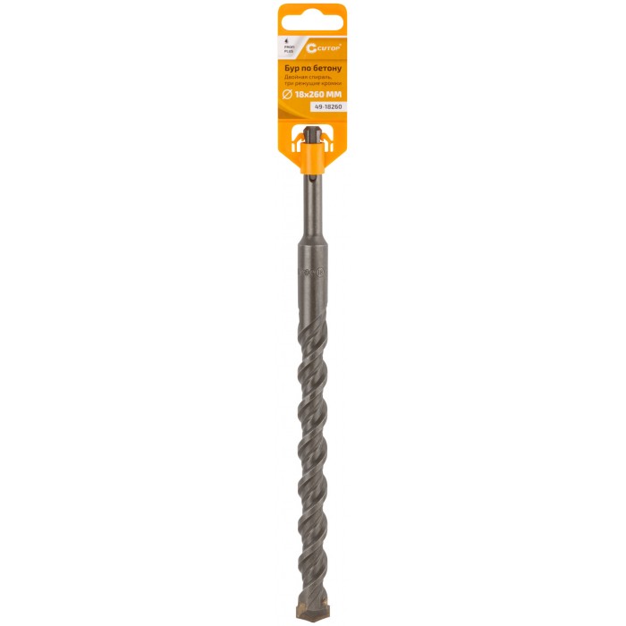 Бур по бетону CUTOP, Profi Plus - двойная спираль, три пылеотводящие кромки, 18 x 260 мм (49-18260)