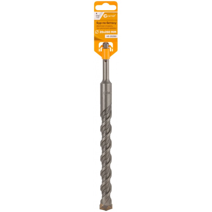 Бур по бетону CUTOP, Profi Plus - двойная спираль, три пылеотводящие кромки, 20 x 260 мм (49-20260)