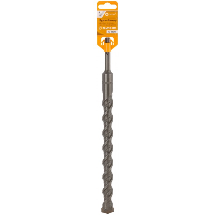 Бур по бетону CUTOP, Profi Plus - двойная спираль, три пылеотводящие кромки, 22 x 310 мм (49-22310)