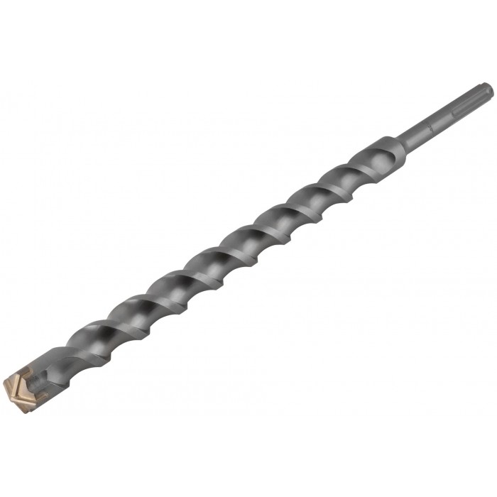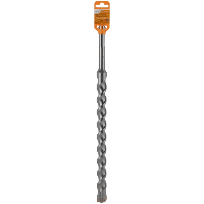 Бур по бетону с крестовым наконечником Cutop Profi Plus. Используют в мощных перфораторах с типоразмером хвостовика SDS-Max для сверления твердых пород камня, бетона, армированного бетона, кирпича. Для производства крестового наконечника бура используется сплав карбида вольфрама с добавлением кобальта 8%. Это позволяют производить точные отверстия и гарантирует длительную работу оснастки без изменения диаметра. Дополнительные резцы занижены по диаметру во избежание заклинивания бура. Конструкция спирали позволяет оптимально отводить шлам и предотвращает скапливание отходов в канавках. Спиральная часть бура выполнена из качественной инструментальной стали и проходит специальную термическую обработку. Благодаря этому бур выдерживает высокие нагрузки без риска деформации. При установке в патрон хвостовик необходимо смазывать. Материал: инструментальная сталь.