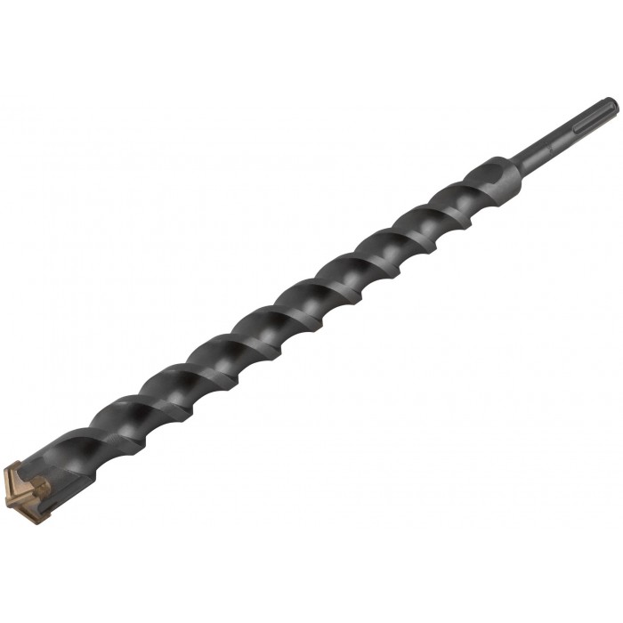 Бур по бетону с крестовым наконечником Cutop Profi Plus. Используют в мощных перфораторах с типоразмером хвостовика SDS-Max для сверления твердых пород камня, бетона, армированного бетона, кирпича. Для производства крестового наконечника бура используется сплав карбида вольфрама с добавлением кобальта 8%. Это позволяют производить точные отверстия и гарантирует длительную работу оснастки без изменения диаметра. Дополнительные резцы занижены по диаметру во избежание заклинивания бура. Конструкция спирали позволяет оптимально отводить шлам и предотвращает скапливание отходов в канавках. Спиральная часть бура выполнена из качественной инструментальной стали и проходит специальную термическую обработку. Благодаря этому бур выдерживает высокие нагрузки без риска деформации. При установке в патрон хвостовик необходимо смазывать. Материал: инструментальная сталь.