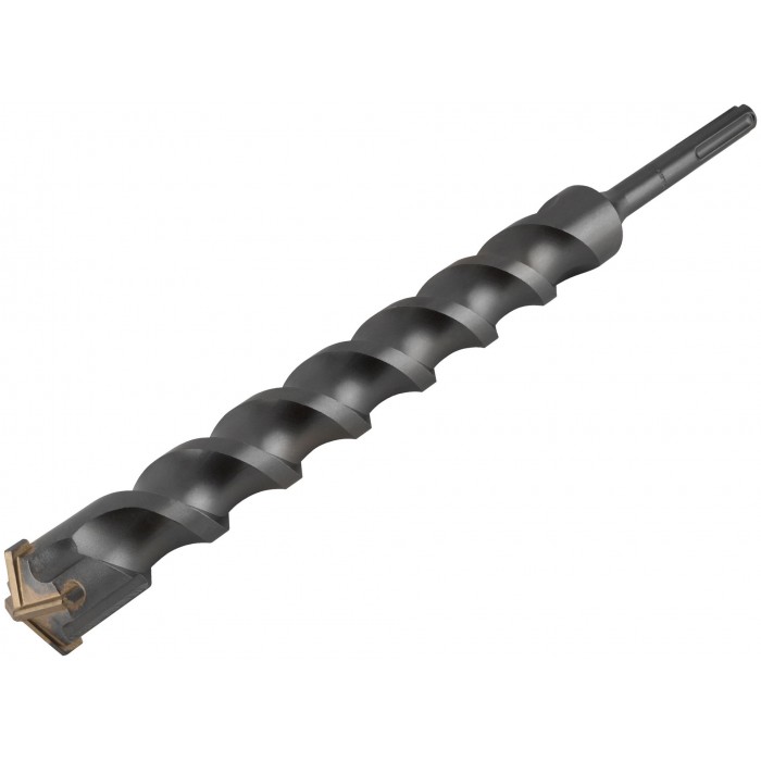 Бур по бетону с крестовым наконечником Cutop Profi Plus. Используют в мощных перфораторах с типоразмером хвостовика SDS-Max для сверления твердых пород камня, бетона, армированного бетона, кирпича. Для производства крестового наконечника бура используется сплав карбида вольфрама с добавлением кобальта 8%. Это позволяют производить точные отверстия и гарантирует длительную работу оснастки без изменения диаметра. Дополнительные резцы занижены по диаметру во избежание заклинивания бура. Конструкция спирали позволяет оптимально отводить шлам и предотвращает скапливание отходов в канавках. Спиральная часть бура выполнена из качественной инструментальной стали и проходит специальную термическую обработку. Благодаря этому бур выдерживает высокие нагрузки без риска деформации. При установке в патрон хвостовик необходимо смазывать. Материал: инструментальная сталь.