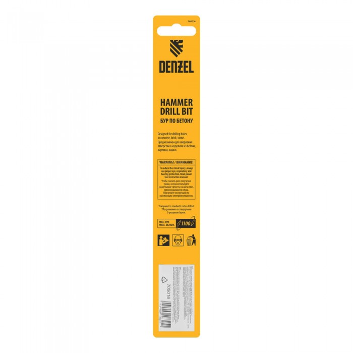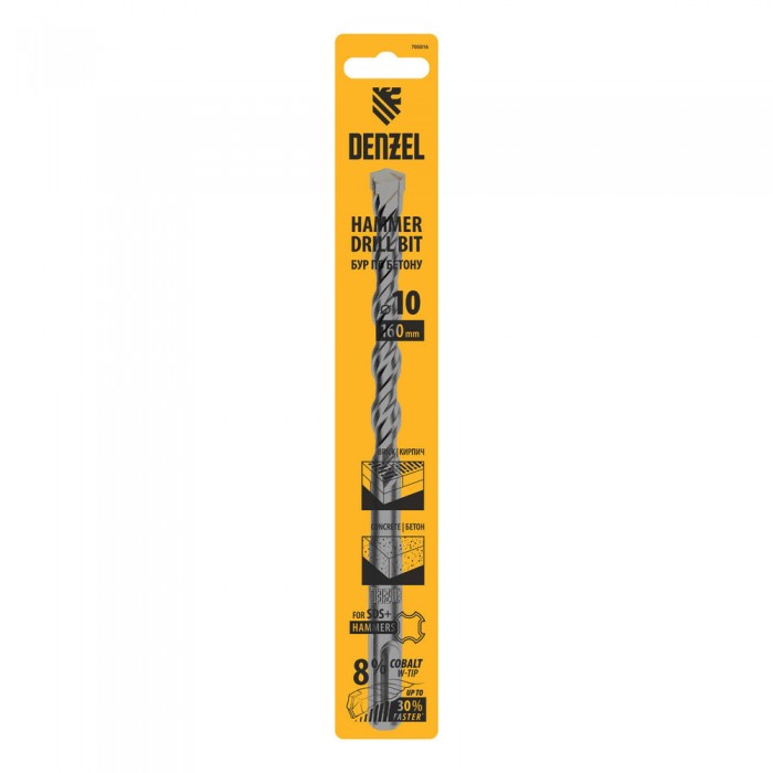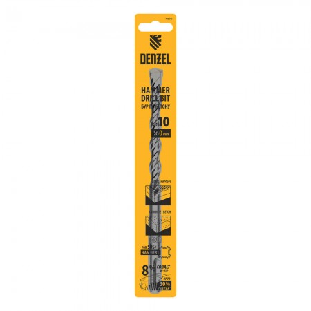 Бур по бетону, двойная спираль, три пылеотводящие кромки, 10 x 160 мм DENZEL (705016)