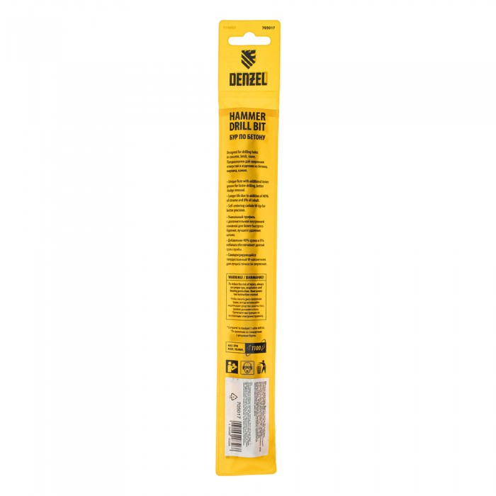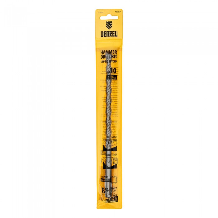 Бур по бетону, двойная спираль, три пылеотводящие кромки, 10 x 210 мм DENZEL (705017)