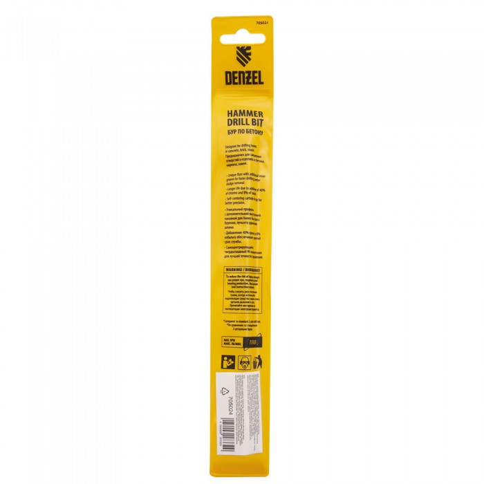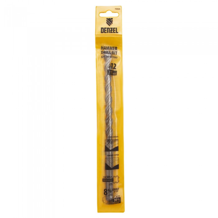 Бур по бетону, двойная спираль, три пылеотводящие кромки, 12 x 210 мм DENZEL (705024)