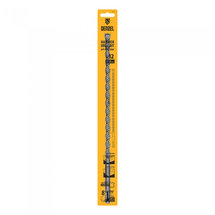 Бур по бетону, двойная спираль, три пылеотводящие кромки, 12 x 310 мм DENZEL (705026)