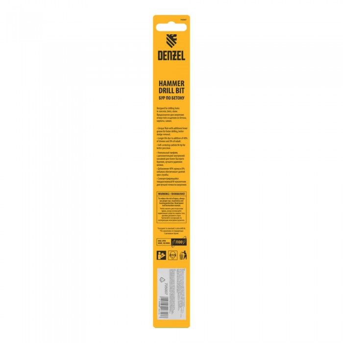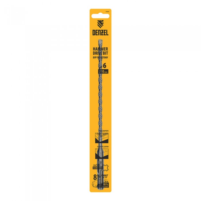 Бур по бетону, двойная спираль, три пылеотводящие кромки, 6 x 210 мм DENZEL (705007)