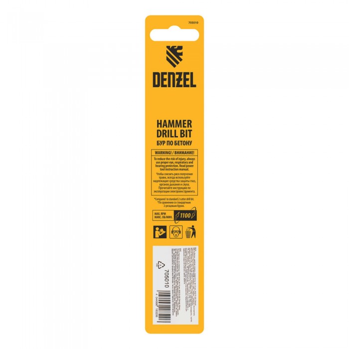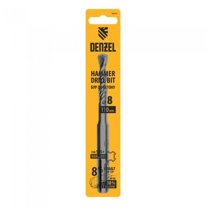 Бур по бетону, двойная спираль, три пылеотводящие кромки, 8 x 110 мм DENZEL (705010)