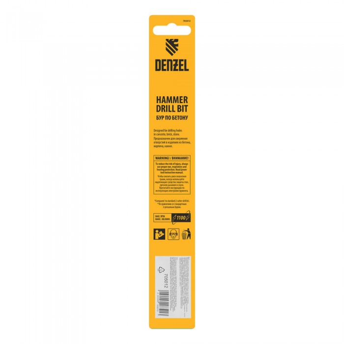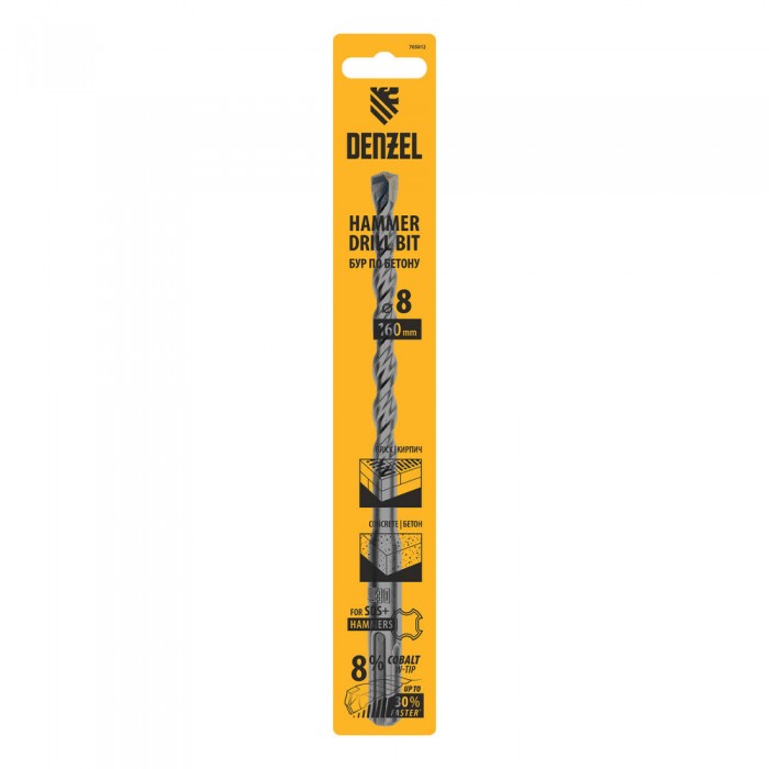 Бур по бетону, двойная спираль, три пылеотводящие кромки, 8 x 160 мм DENZEL (705012)