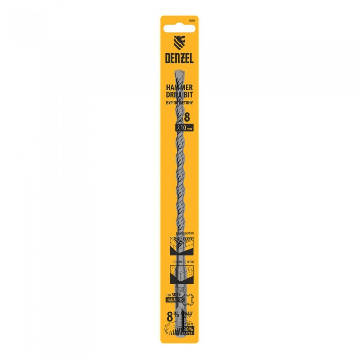 Бур по бетону, двойная спираль, три пылеотводящие кромки, 8 x 210 мм DENZEL (705013)
