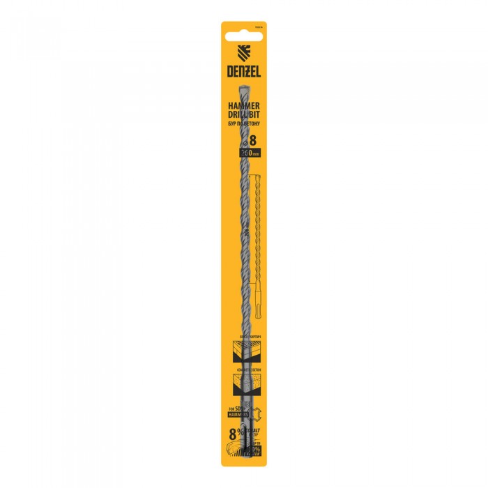 Бур по бетону, двойная спираль, три пылеотводящие кромки, 8 x 260 мм DENZEL (705014)