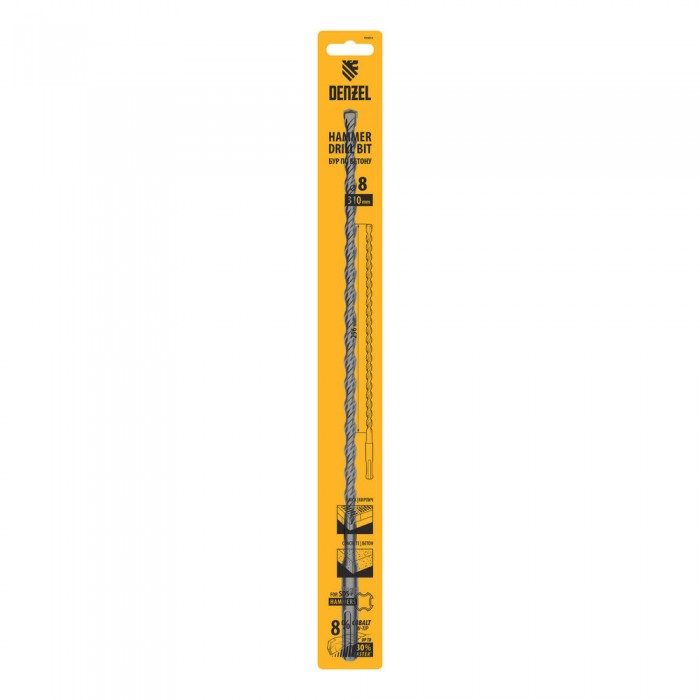 Бур по бетону, двойная спираль, три пылеотводящие кромки, 8 x 310 мм DENZEL (705015)