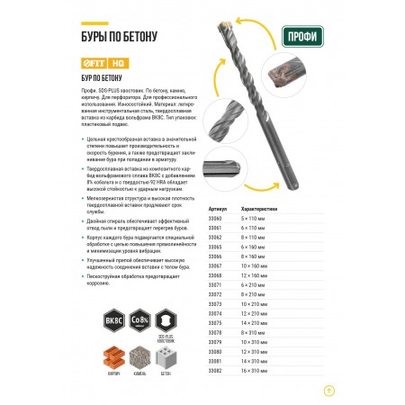 Бур по бетону SDS-PLUS, Профи, крестообразная вставка, двойная спираль, 10 х 160 мм (33067)