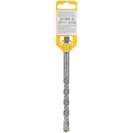 Профи. SDS-PLUS хвостовик. По бетону, камню, кирпичу. Для перфоратора. Для профессионального использования. Износостойкий. Цельна крестообразная вставка с добавлением 8% кобальта для повышенной производительности. Двойная спираль для быстрого отвода материала и охлаждения корпуса бура. Материал: легированная инструментальная сталь, твердосплавная вставка из карбида вольфрама ВК8С. Упаковка: пластиковый подвес.