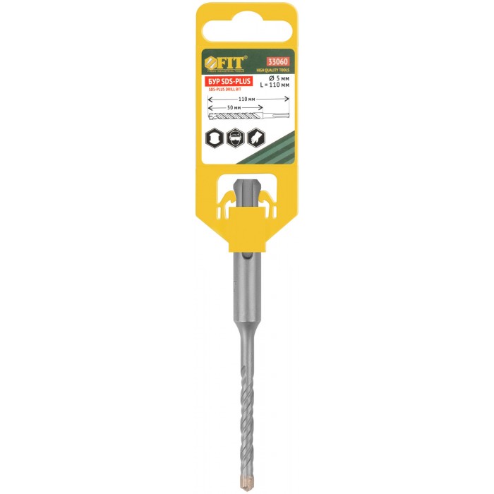 Бур по бетону SDS-PLUS, Профи, крестообразная вставка, двойная спираль, 5 х 110 мм (33060)