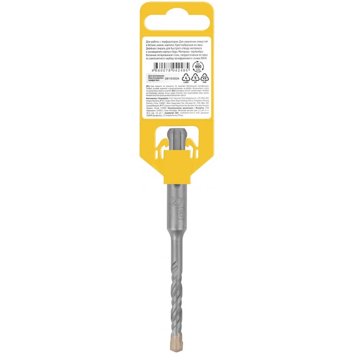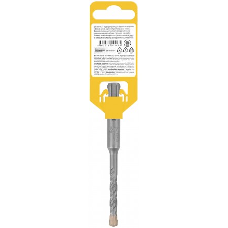Профи. SDS-PLUS хвостовик. По бетону, камню, кирпичу. Для перфоратора. Для профессионального использования. Износостойкий. Цельна крестообразная вставка с добавлением 8% кобальта для повышенной производительности. Двойная спираль для быстрого отвода материала и охлаждения корпуса бура. Материал: легированная инструментальная сталь, твердосплавная вставка из карбида вольфрама ВК8С. Упаковка: пластиковый подвес.