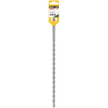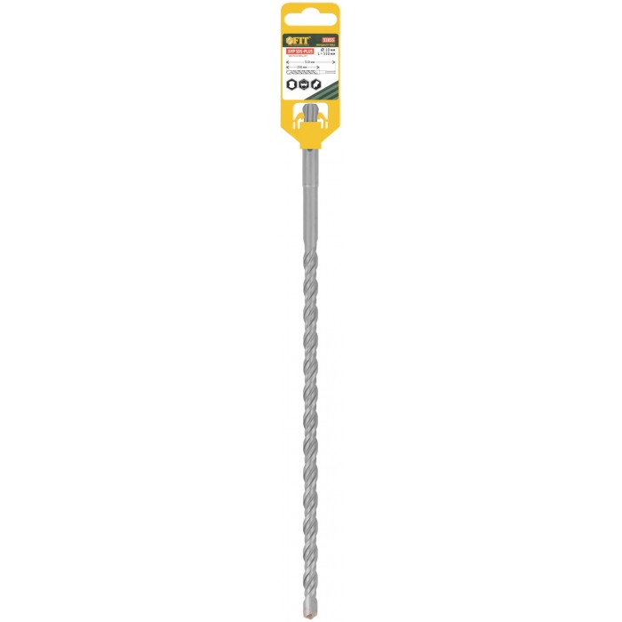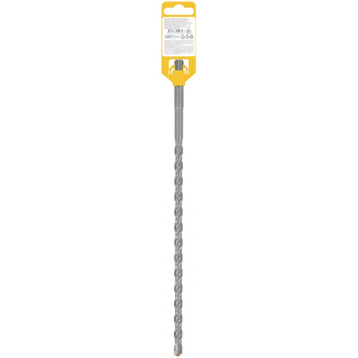 Профи. SDS-PLUS хвостовик. По бетону, камню, кирпичу. Для перфоратора. Для профессионального использования. Износостойкий. W-образная вставка с добавлением 8% кобальта для лучшего позиционирования на поверхности. Двойная спираль для быстрого отвода материала и охлаждения корпуса бура. Материал: легированная инструментальная сталь, твердосплавная вставка из карбида вольфрама ВК8С. Упаковка: пластиковый подвес.