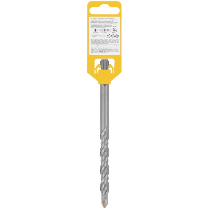 Профи. SDS-PLUS хвостовик. По бетону, камню, кирпичу. Для перфоратора. Для профессионального использования. Износостойкий. W-образная вставка с добавлением 8% кобальта для лучшего позиционирования на поверхности. Двойная спираль для быстрого отвода материала и охлаждения корпуса бура. Материал: легированная инструментальная сталь, твердосплавная вставка из карбида вольфрама ВК8С. Упаковка: пластиковый подвес.