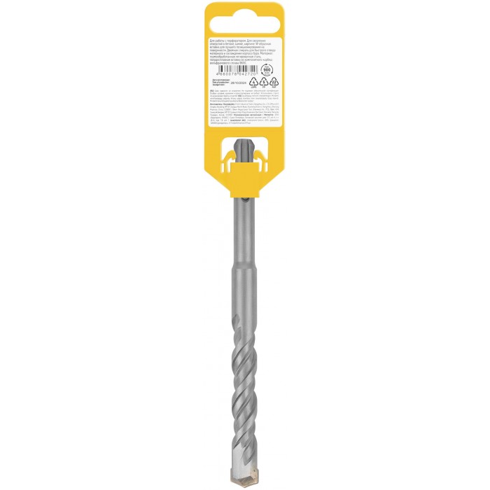 Профи. SDS-PLUS хвостовик. По бетону, камню, кирпичу. Для перфоратора. Для профессионального использования. Износостойкий. W-образная вставка с добавлением 8% кобальта для лучшего позиционирования на поверхности. Двойная спираль для быстрого отвода материала и охлаждения корпуса бура. Материал: легированная инструментальная сталь, твердосплавная вставка из карбида вольфрама ВК8С. Упаковка: пластиковый подвес.