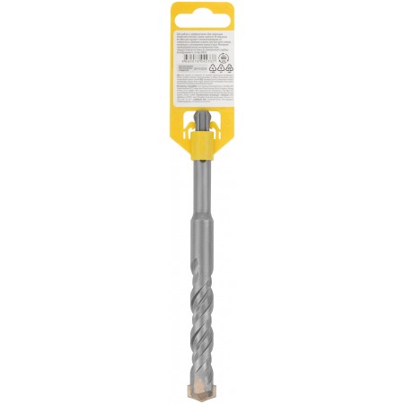 Профи. SDS-PLUS хвостовик. По бетону, камню, кирпичу. Для перфоратора. Для профессионального использования. Износостойкий. W-образная вставка с добавлением 8% кобальта для лучшего позиционирования на поверхности. Двойная спираль для быстрого отвода материала и охлаждения корпуса бура. Материал: легированная инструментальная сталь, твердосплавная вставка из карбида вольфрама ВК8С. Упаковка: пластиковый подвес.