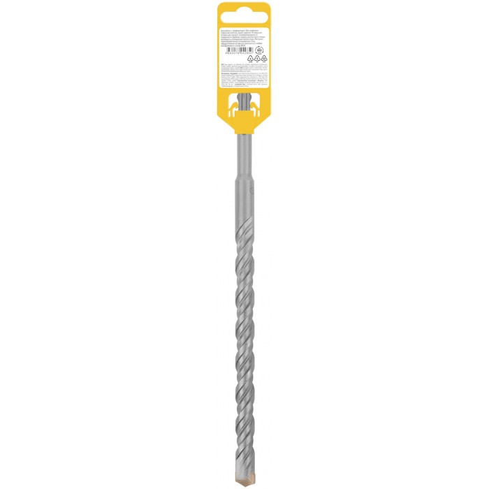 Профи. SDS-PLUS хвостовик. По бетону, камню, кирпичу. Для перфоратора. Для профессионального использования. Износостойкий. W-образная вставка с добавлением 8% кобальта для лучшего позиционирования на поверхности. Двойная спираль для быстрого отвода материала и охлаждения корпуса бура. Материал: легированная инструментальная сталь, твердосплавная вставка из карбида вольфрама ВК8С. Упаковка: пластиковый подвес.