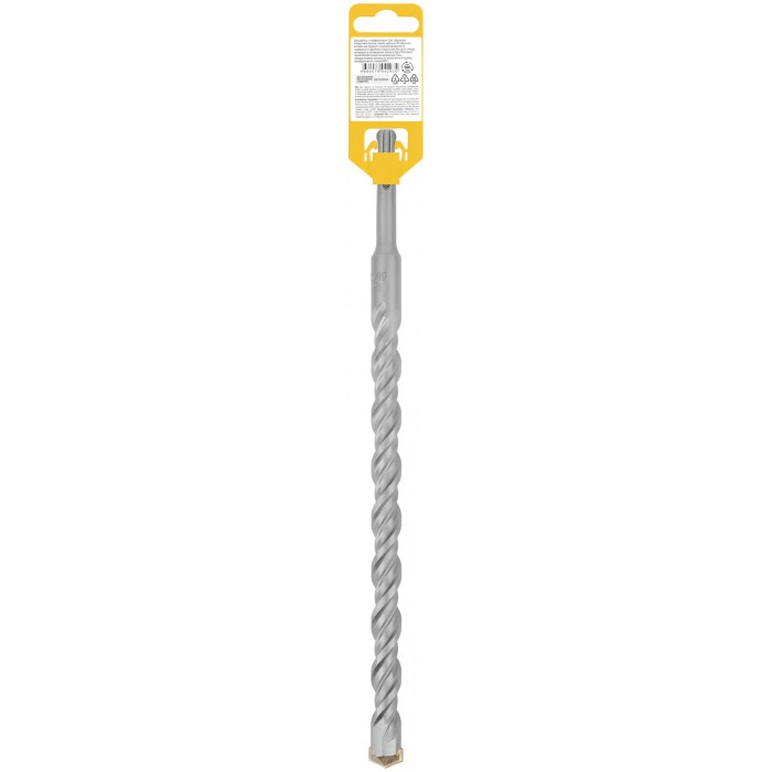 Профи. SDS-PLUS хвостовик. По бетону, камню, кирпичу. Для перфоратора. Для профессионального использования. Износостойкий. W-образная вставка с добавлением 8% кобальта для лучшего позиционирования на поверхности. Двойная спираль для быстрого отвода материала и охлаждения корпуса бура. Материал: легированная инструментальная сталь, твердосплавная вставка из карбида вольфрама ВК8С. Упаковка: пластиковый подвес.