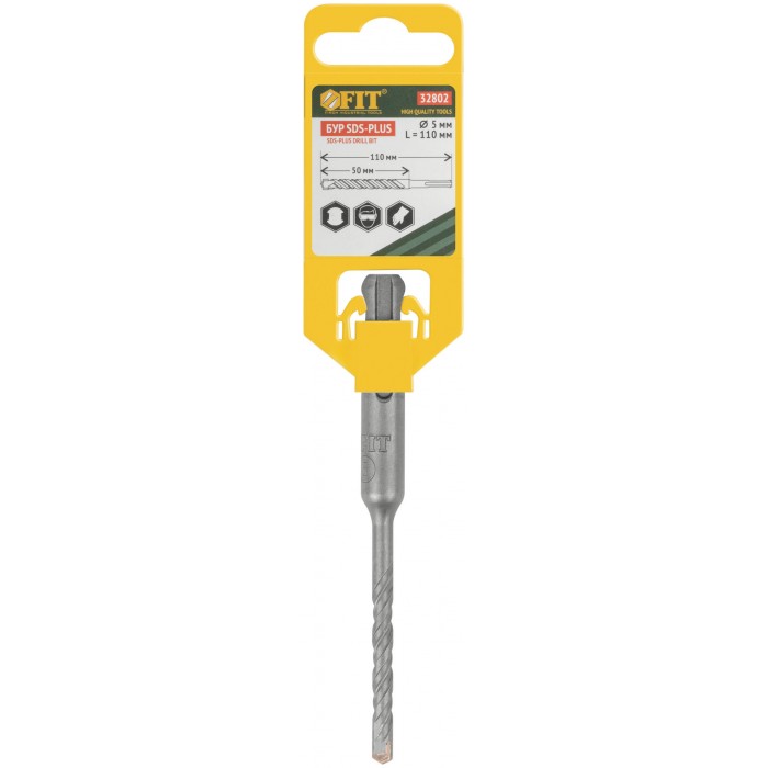Бур по бетону SDS PLUS, Профи, W-образная вставка, двойная спираль, 5 х 110 мм (32802)
