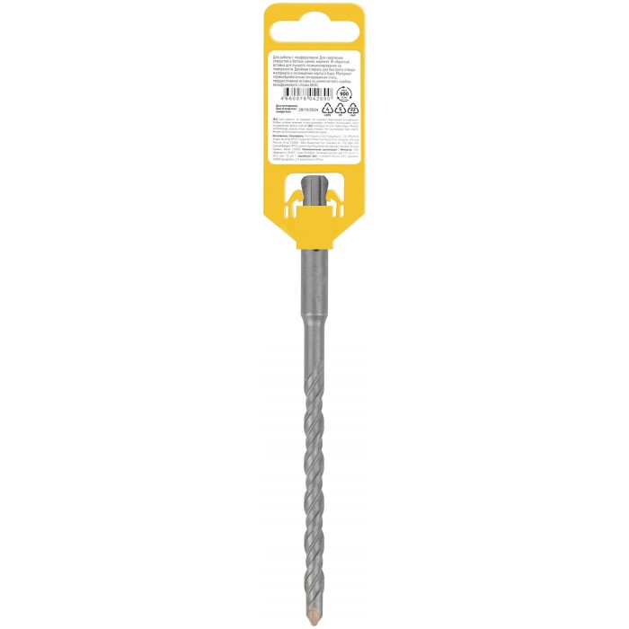 Профи. SDS-PLUS хвостовик. По бетону, камню, кирпичу. Для перфоратора. Для профессионального использования. Износостойкий. W-образная вставка с добавлением 8% кобальта для лучшего позиционирования на поверхности. Двойная спираль для быстрого отвода материала и охлаждения корпуса бура. Материал: легированная инструментальная сталь, твердосплавная вставка из карбида вольфрама ВК8С. Упаковка: пластиковый подвес.