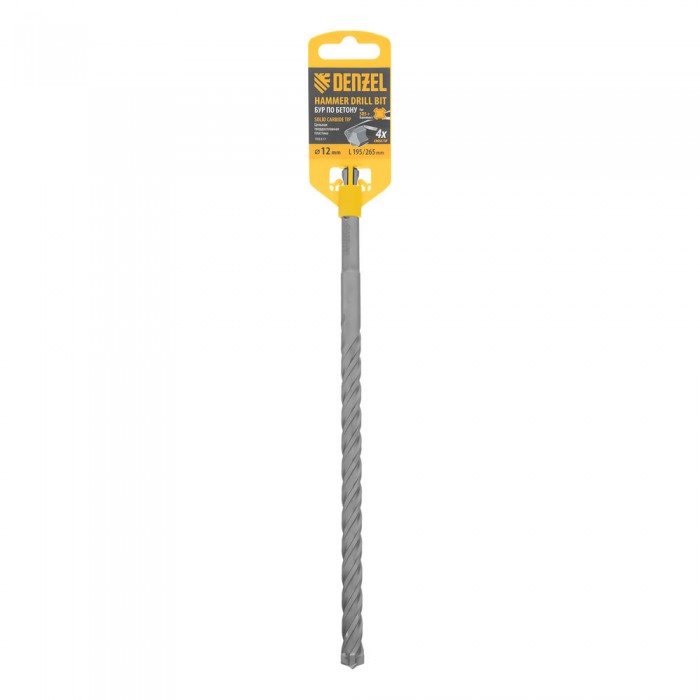 Бур по бетону, цельная крестовая пластина, 12x265 мм, SDS PLUS Denzel (705317)