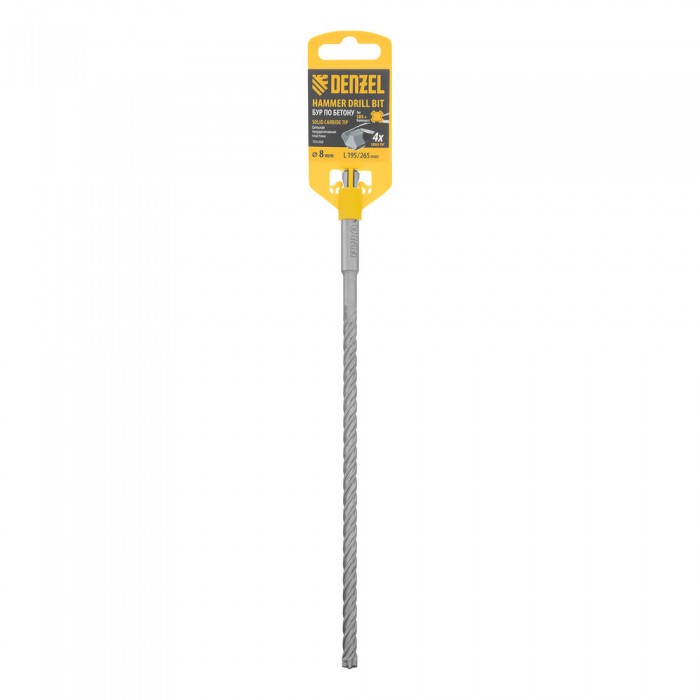 Бур по бетону, цельная крестовая пластина, 8x265 мм, SDS PLUS Denzel (705308)