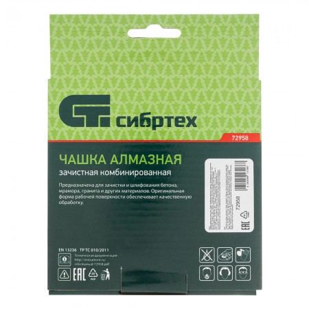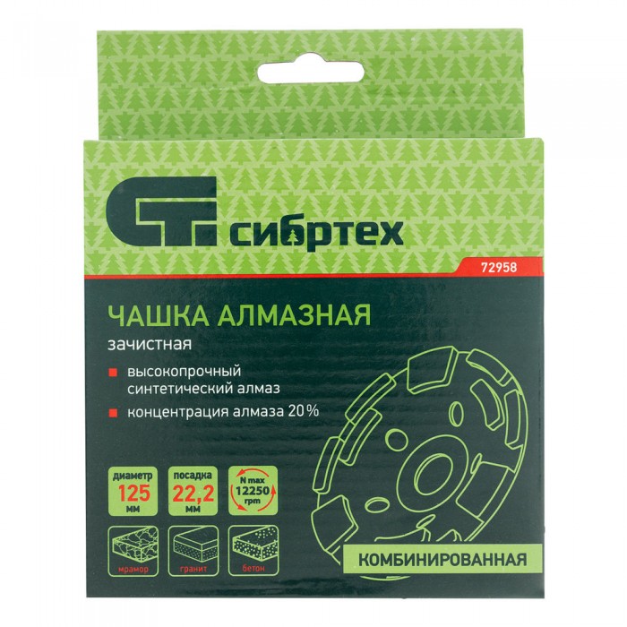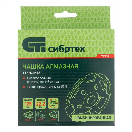 Чашка алмазная зачистная 125 мм, комбинированная Сибртех (72958)