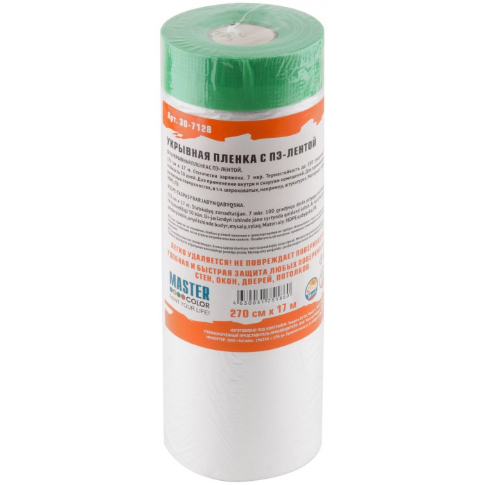 Укрывная пленка с ПЭ-лентой, статически заряжена, 7 мкр., 270 см х 17 м, Clever Cover, 30-7128