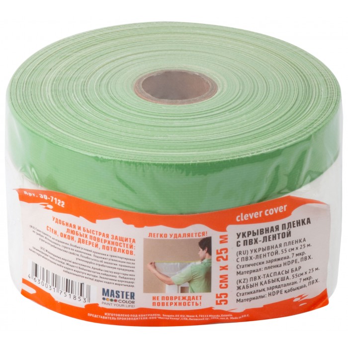 Укрывная пленка с ПЭ-лентой, статически заряжена, 7 мкр., 55 см х 25 м, Clever Cover, 30-7122