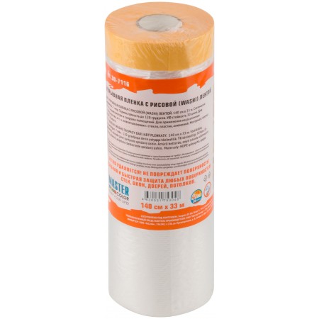 Укрывная пленка с малярной лентой из тонкой рисовой бумаги (WASHI ). Для защиты от краски, пыли, грязи при проведении покрасочных, ремонтных и отделочных работ. Малярная лента: термостойкость до 120°C, УФ стойкость до 30 дней, высококачественный акриловый клей на водной основе, высокая адгезия. Для средних и больших поверхностей внутри помещений. Плотное прилегание плёнки к поверхности за счёт электростатического заряда. Толщина пленки 7 мкм.