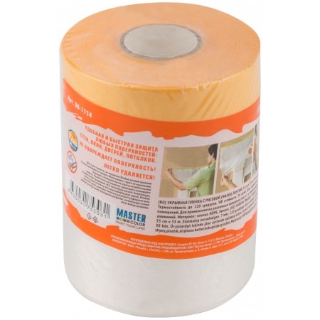 Укрывная пленка с малярной лентой из тонкой рисовой бумаги (WASHI ). Для защиты от краски, пыли, грязи при проведении покрасочных, ремонтных и отделочных работ. Малярная лента: термостойкость до 120°C, УФ стойкость до 30 дней, высококачественный акриловый клей на водной основе, высокая адгезия. Для средних и больших поверхностей внутри помещений. Плотное прилегание плёнки к поверхности за счёт электростатического заряда. Толщина пленки 7 мкм.