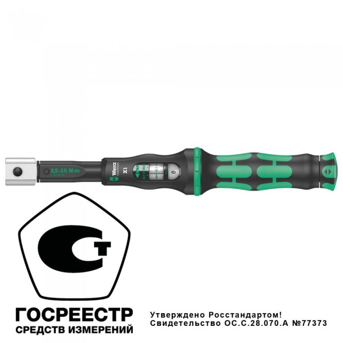 Ключ динамометрический регулируемый для насадок 9x12 мм X 1, 2.5-25 Нм, 283 мм, левая/правая резьба Click-Torque WE-075651