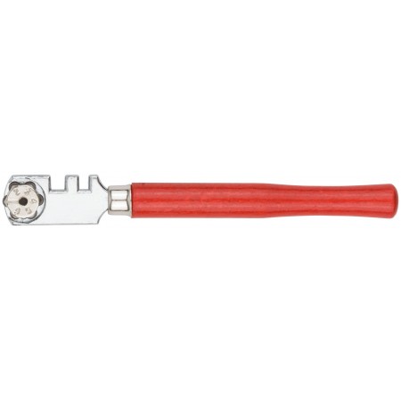 Для резки стекла толщиной до 4 мм. Материал: инструментальная сталь, деревянная ручка, твердосплавные ролики. Упаковка: блистер.