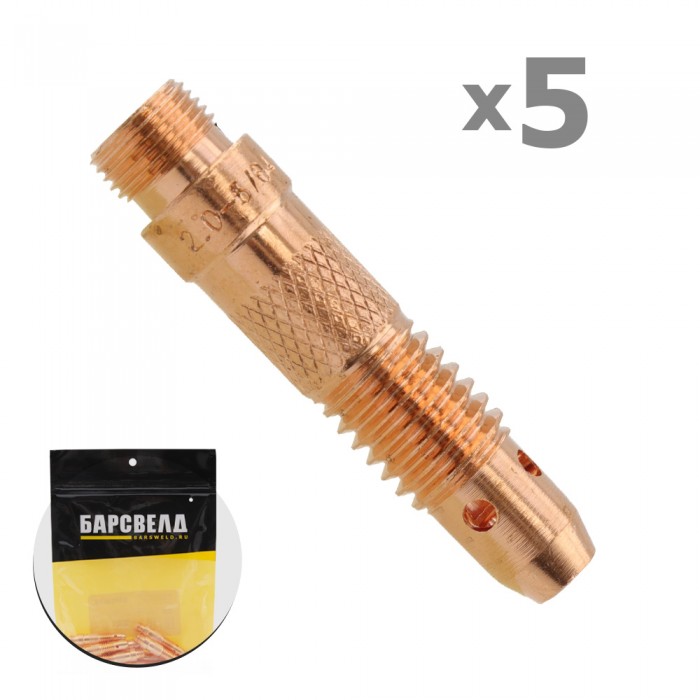 Держатель цанги БАРСВЕЛД ф 2,0 мм предназначен для фиксации цанги с вольфрамовым электродом в аргонодуговых горелках серии SR 17, 18 и 26. В качестве материала для изготовления держателя используется качественный металл, который эффективно отводит тепло, увеличивая надежность изделия.
