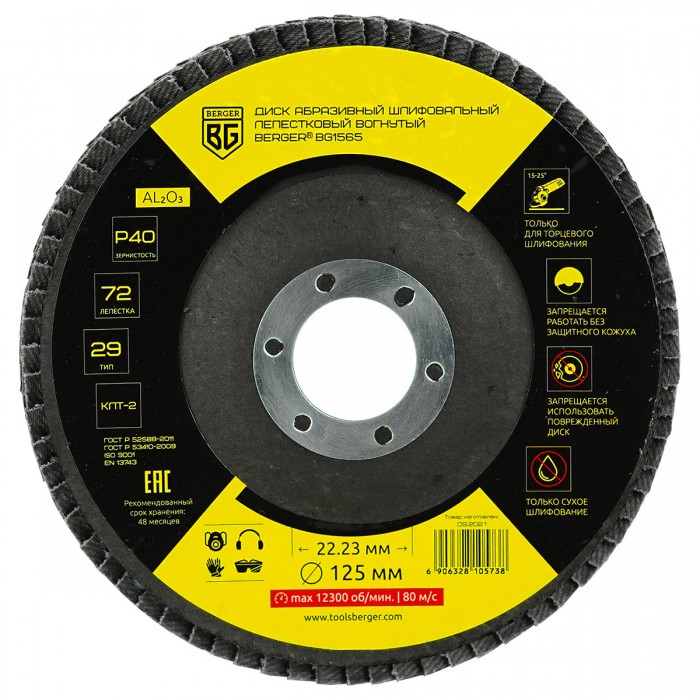 Диск абразивный шлифовальный лепестковый вогнутый (125x22.23 мм, P40) BERGER BG1565