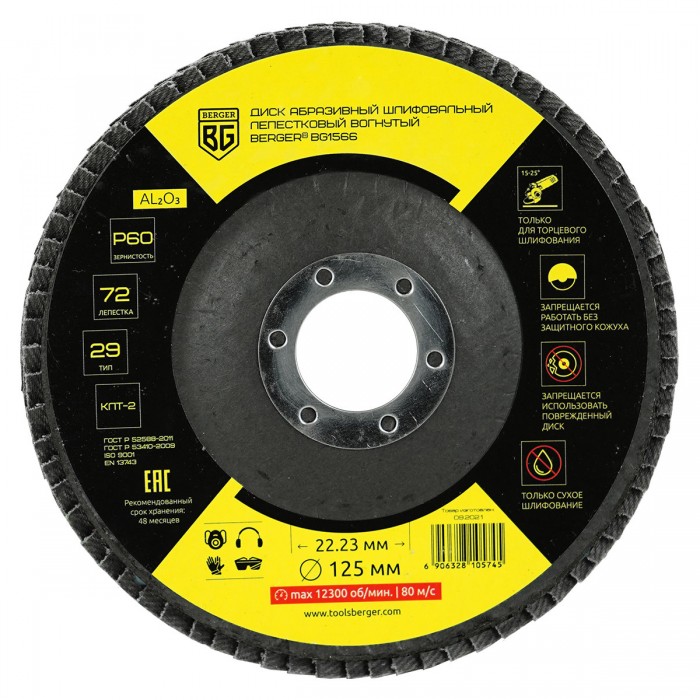 Диск абразивный шлифовальный лепестковый вогнутый (125x22.23 мм, P60) BERGER BG1566